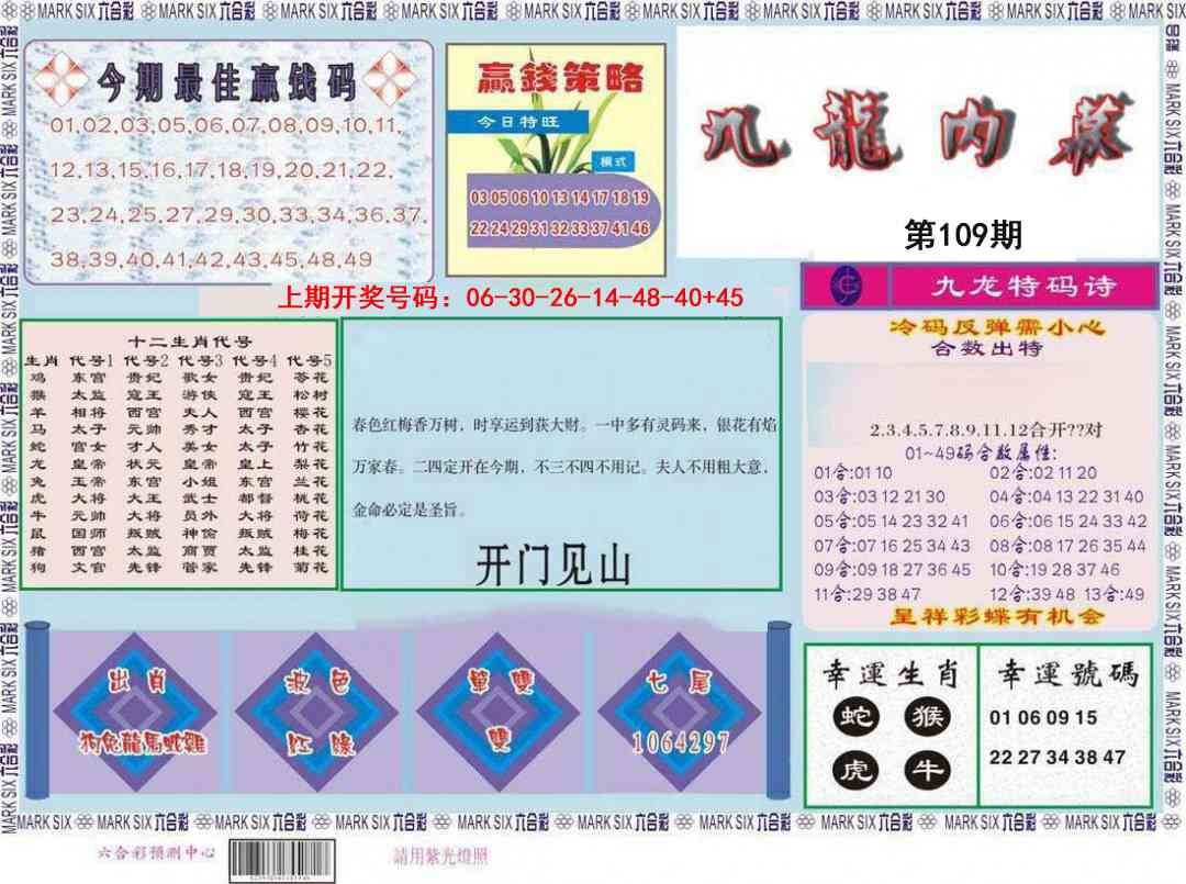 109期: 澳门六合彩彩圖信封【九龙内幕】每期自动更新