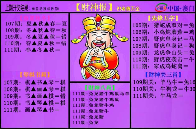 111期: 澳门六合彩彩圖信封【紫财神报】每期自动更新